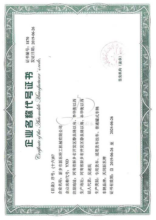 新東機(jī)械部分企業(yè)證書