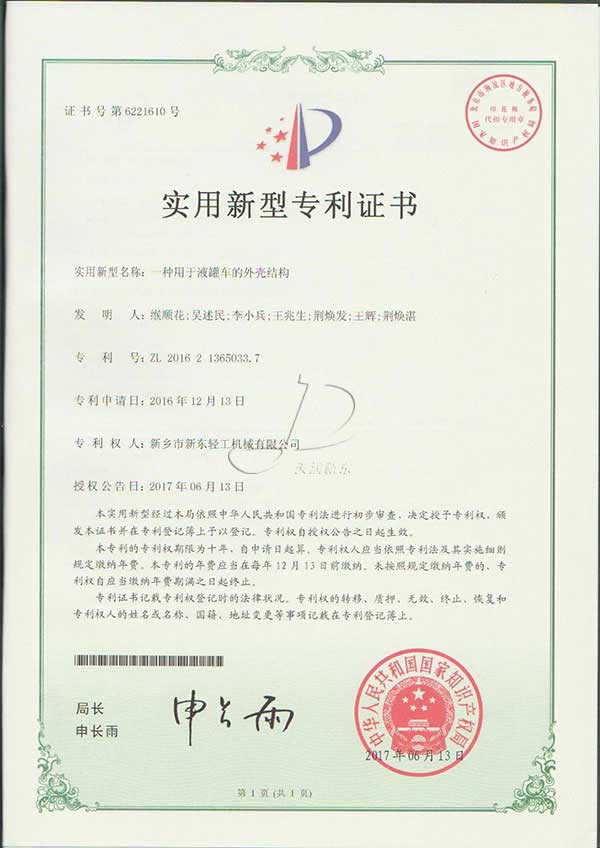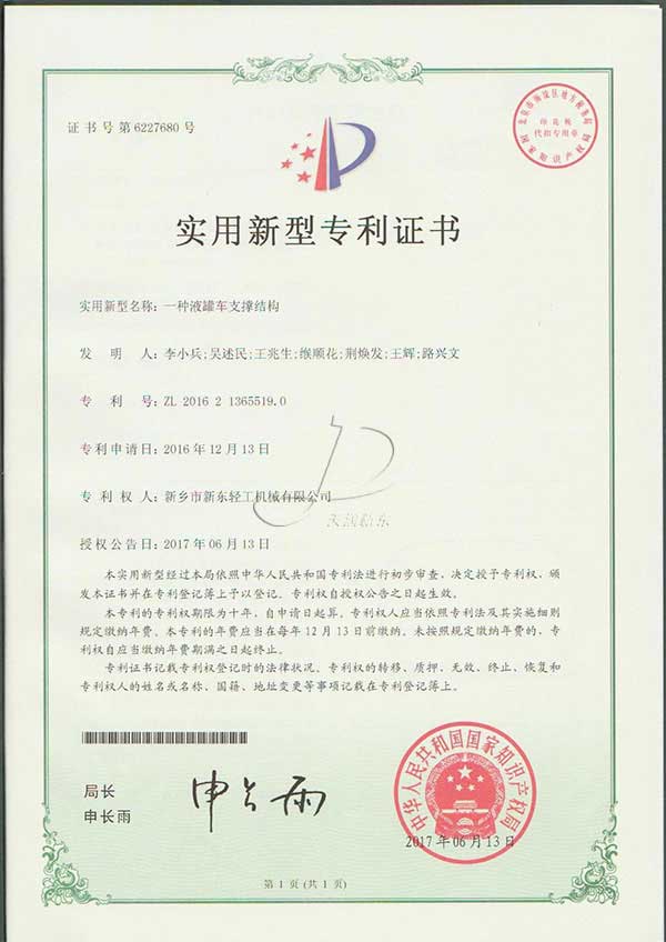 新東機(jī)械部分專利證書